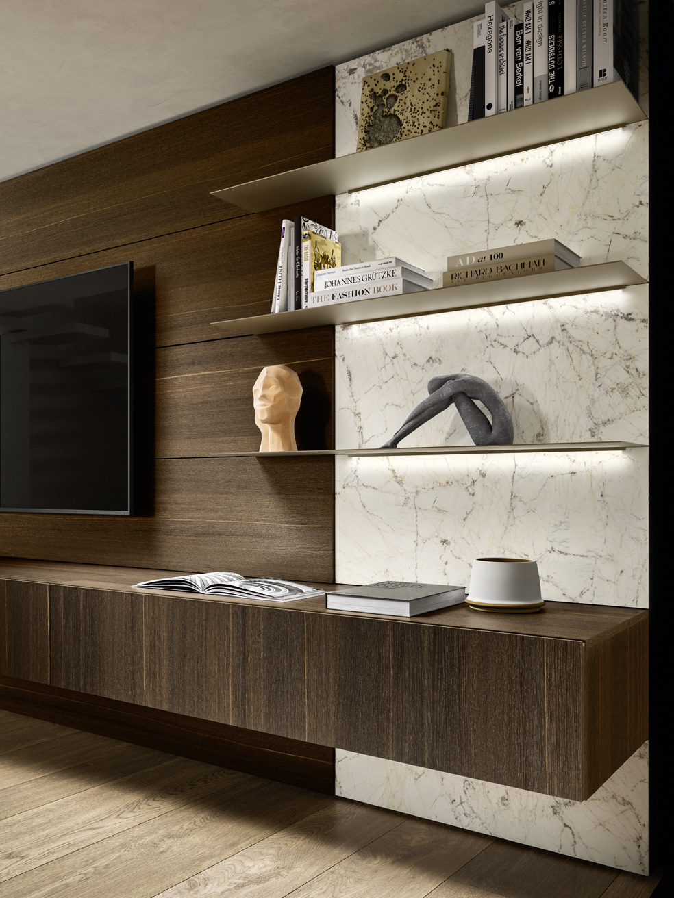 Kombiniert mit LEDs, Regalen oder TV-Elementen wird sie zum funktionalen Highlight.