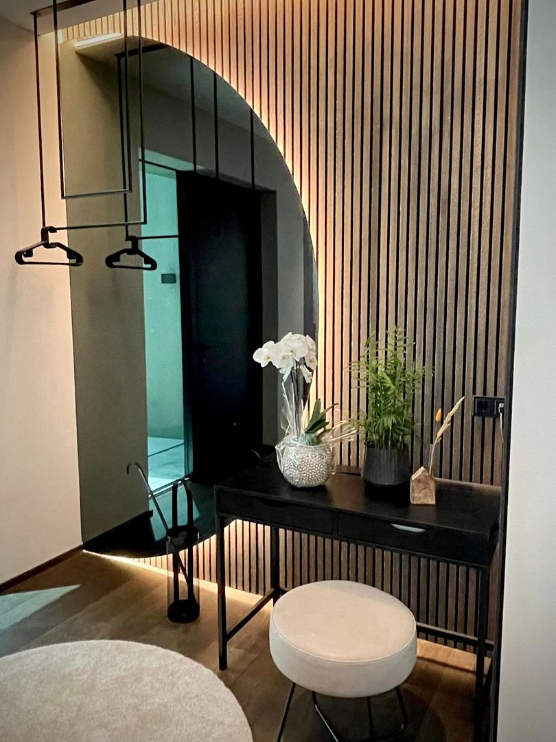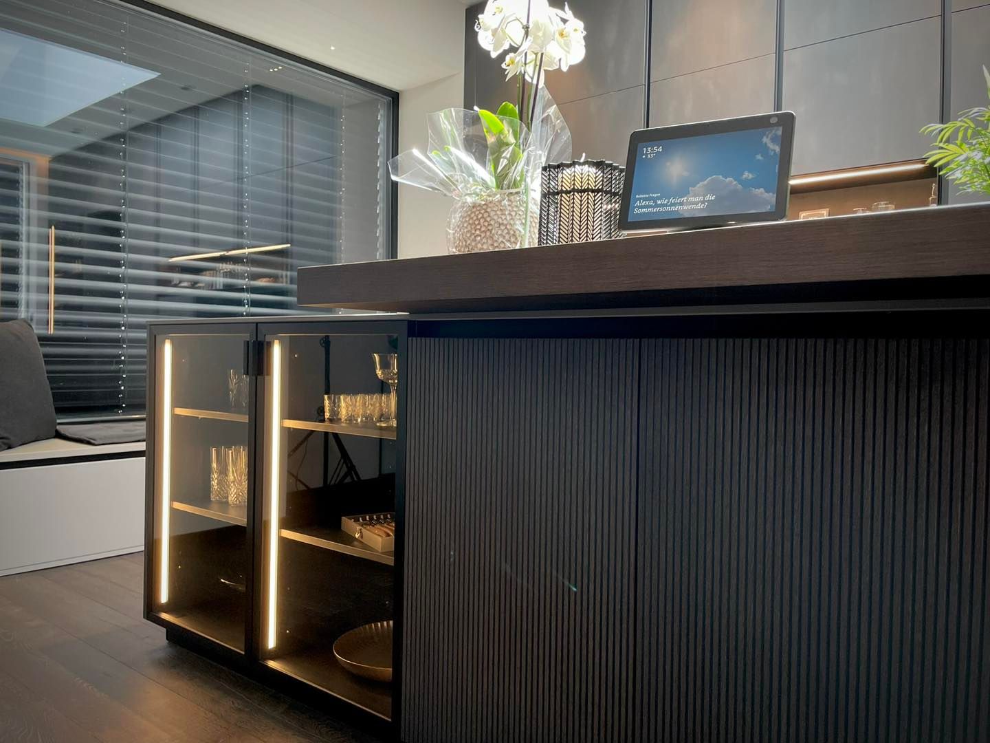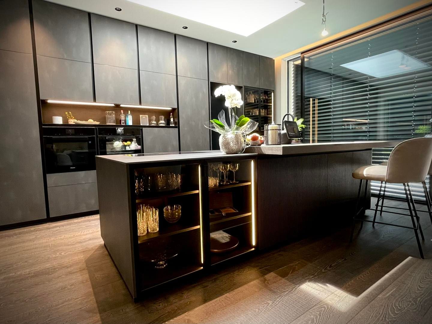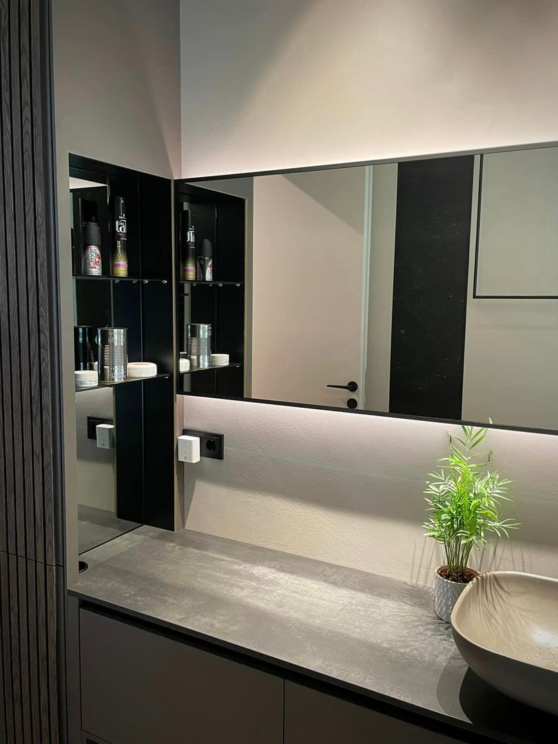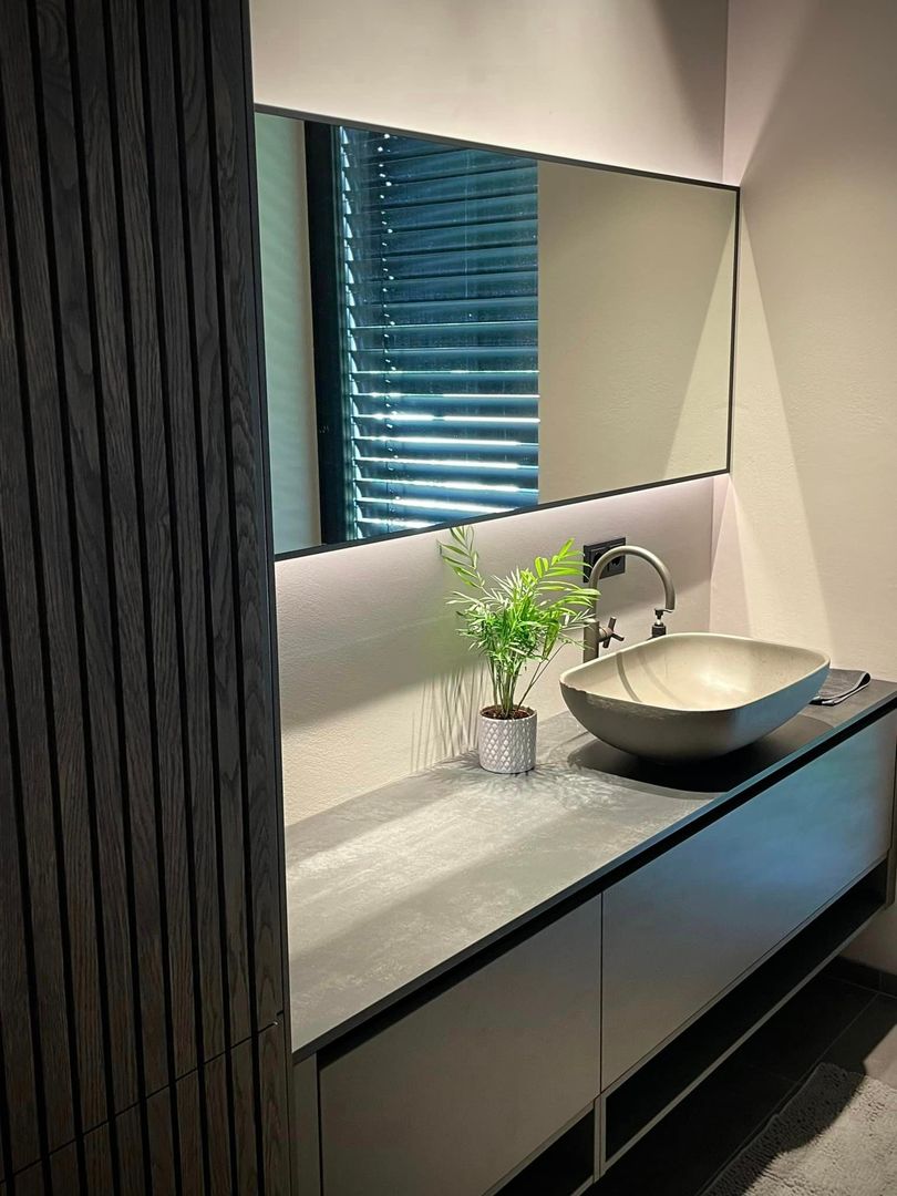 Das "Haus D" vereint stilvolle Eleganz mit funktionaler Wohnlichkeit, perfekt zugeschnitten auf die Bedürfnisse eines jungen, dynamischen Paares. Das Herzstück des Hauses ist die eindrucksvolle Küche, die sich harmonisch in den Ess- und Wohnbereich integriert und dabei sowohl optisch als auch praktisch überzeugt. Farblich haben wir ein durchgängiges Konzept entwickelt, das sich im gesamten Haus wiederfindet und eine einladende Atmosphäre schafft. Die sehr harmonische und trendige Einrichtung bietet genau die Entspannung und das Wohlfühlgefühl, das unsere Kunden sich gewünscht haben – Ziel erreicht!