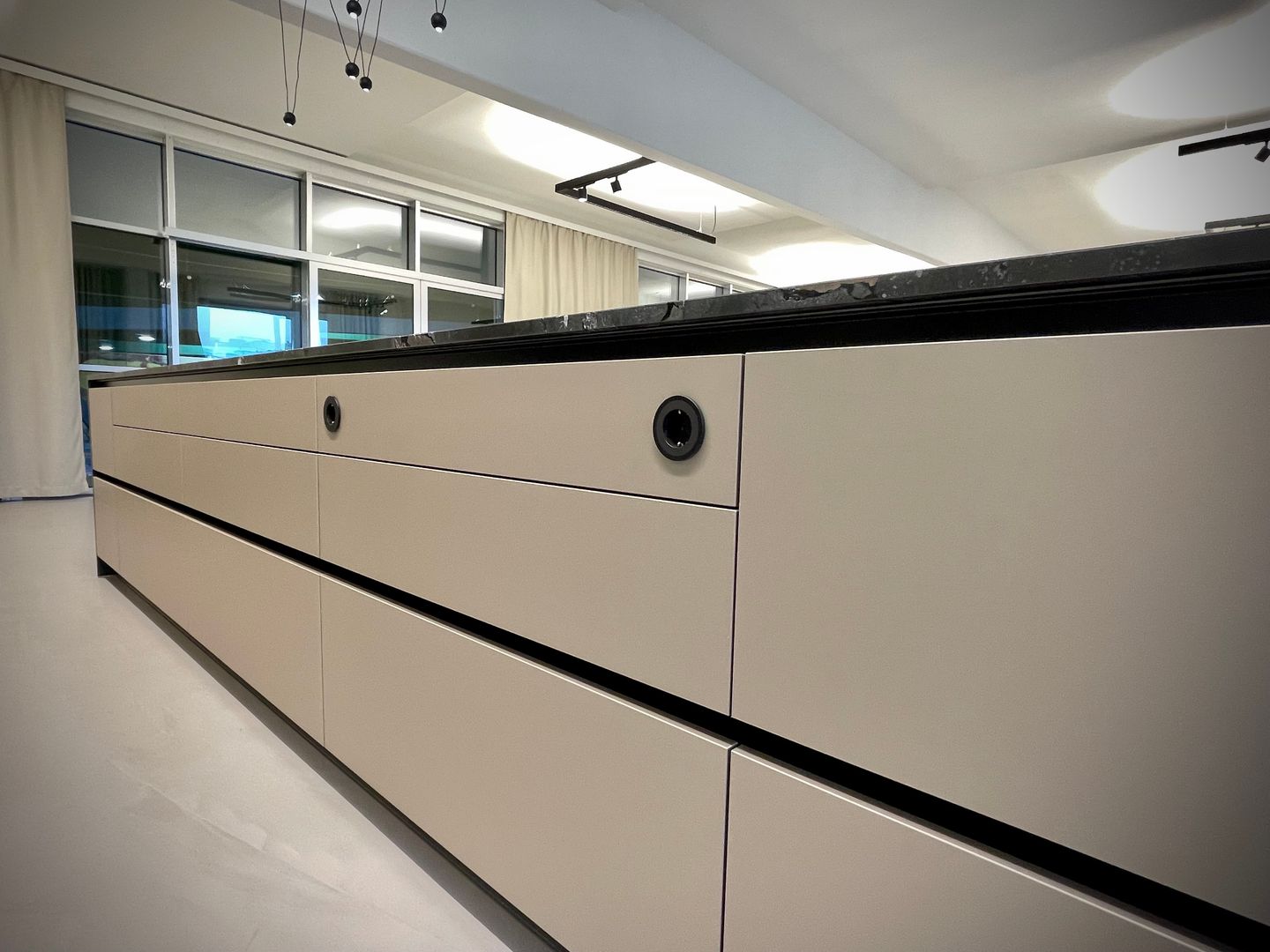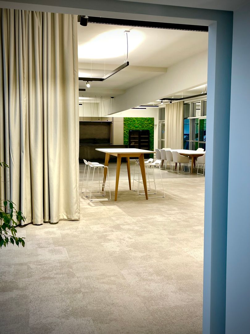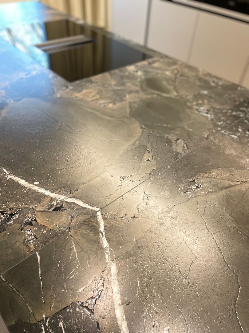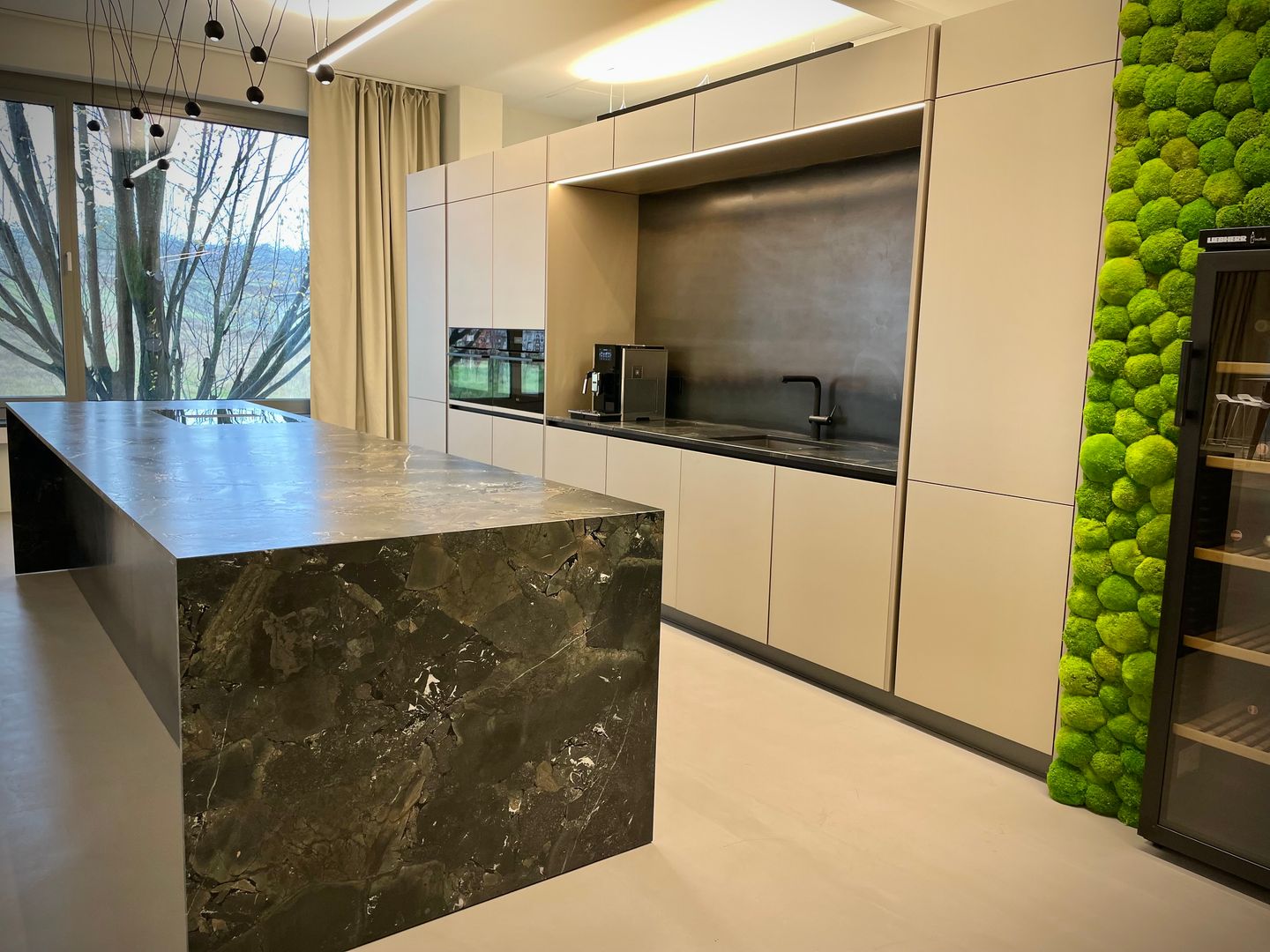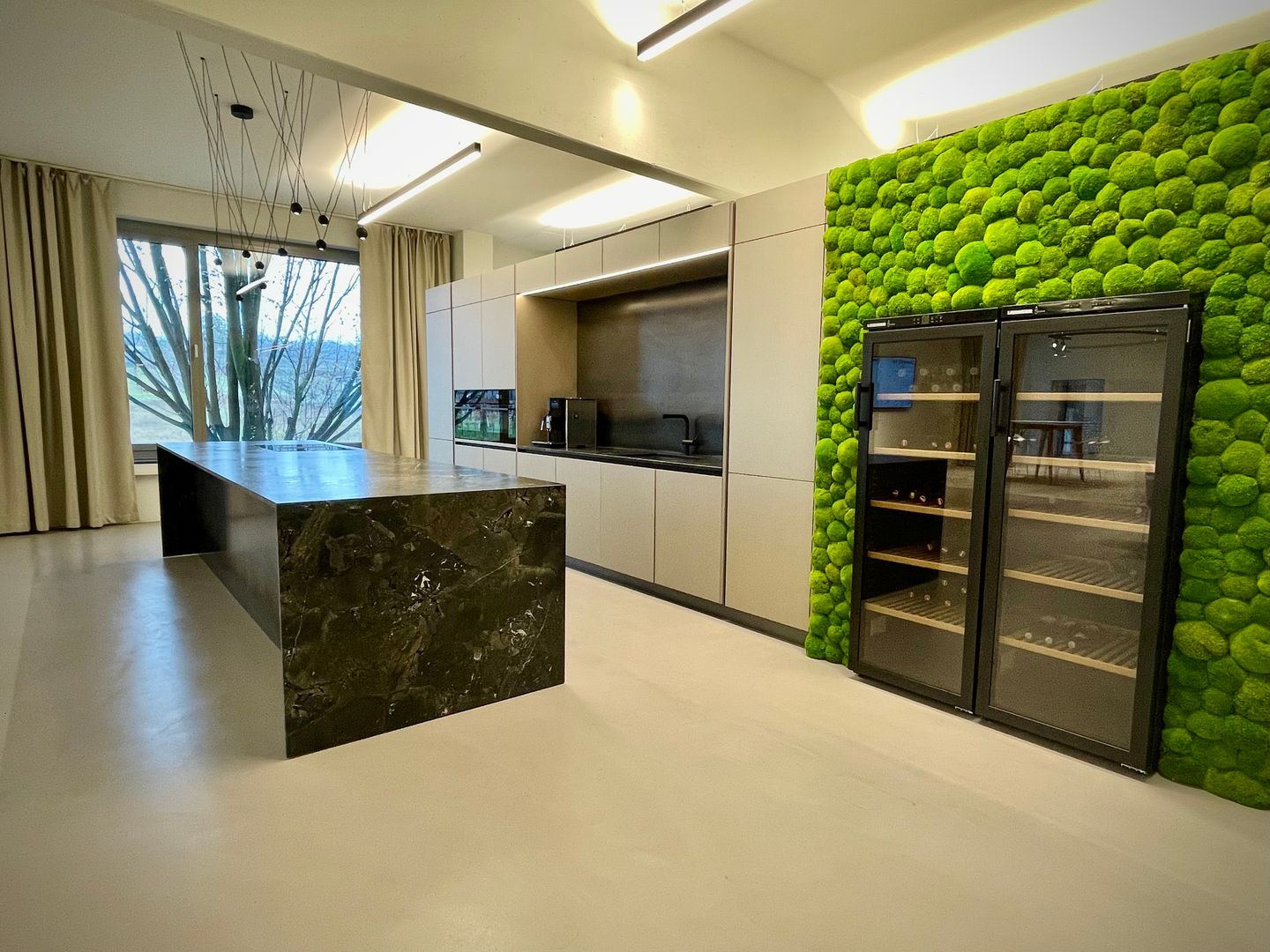 Die "Mitarbeiterküche Renner" ist ein beeindruckendes Beispiel für die Kombination aus Metall- und Steinelementen und natürlichen Akzenten. Die Küche ist geprägt von dunklen, matten Oberflächen, die eine professionelle und zugleich einladende Atmosphäre schaffen. Die Steinoptik der Arbeitsflächen und die modernen, integrierten Elektrogeräte stechen heraus, was der Küche einen funktionalen und gleichzeitig stilvollen Charakter verleiht. Diese Mitarbeiterküche ist perfekt auf die Bedürfnisse eines anspruchsvollen Arbeitsumfelds abgestimmt, in welchen Effizienz und Design Hand in Hand gehen.