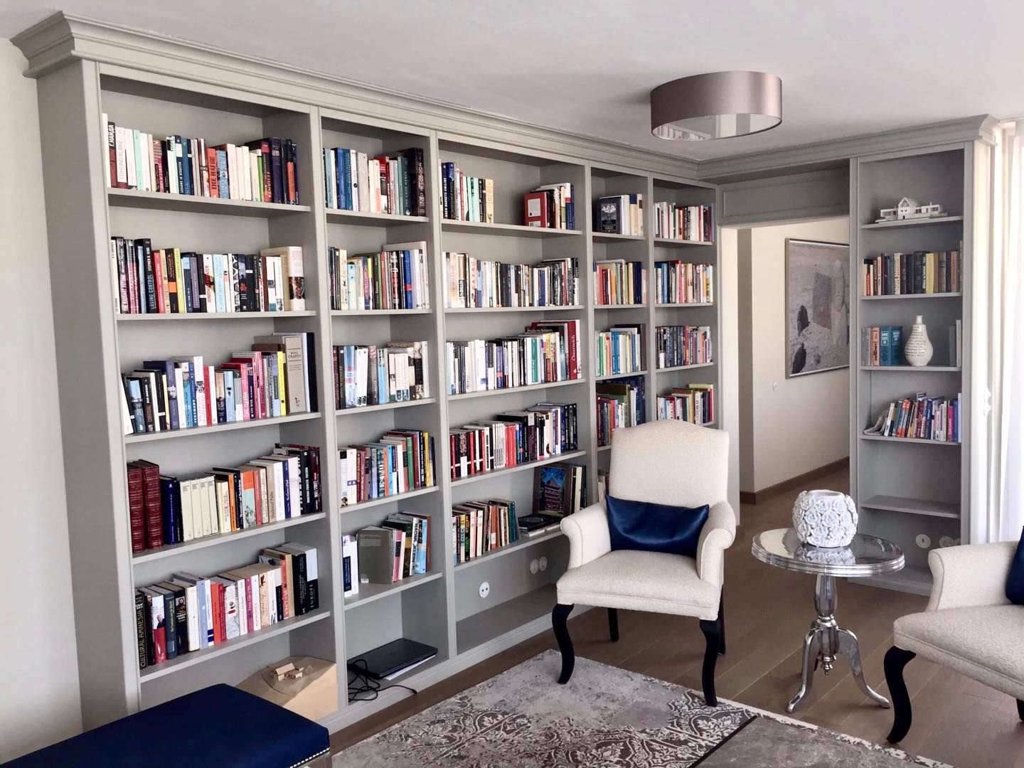 Besonders gerne arbeiten wir strahlende Farbwünsche in das Gesamtkonzept ein. Eine Hochglanzküche mit Keramikarbeitsplatte, ein ständig bereiter Weinklimaschrank für die besonderen Tropfen des Hausherren und die Bibliothek die allen Büchern Platz bietet und das gemütliche Lesen beim Kamin noch attraktiver macht, ist das Herzstück dieser Dachgeschosswohnung. Das geräumigen Masterbad, das charmante "Damenbadezimmer" und die zentimetergenau verbauten Einbauschränke umrahmen all´ das, was in diesem Rückzugsort über den Dächern von Wien sonst noch zu finden ist.
