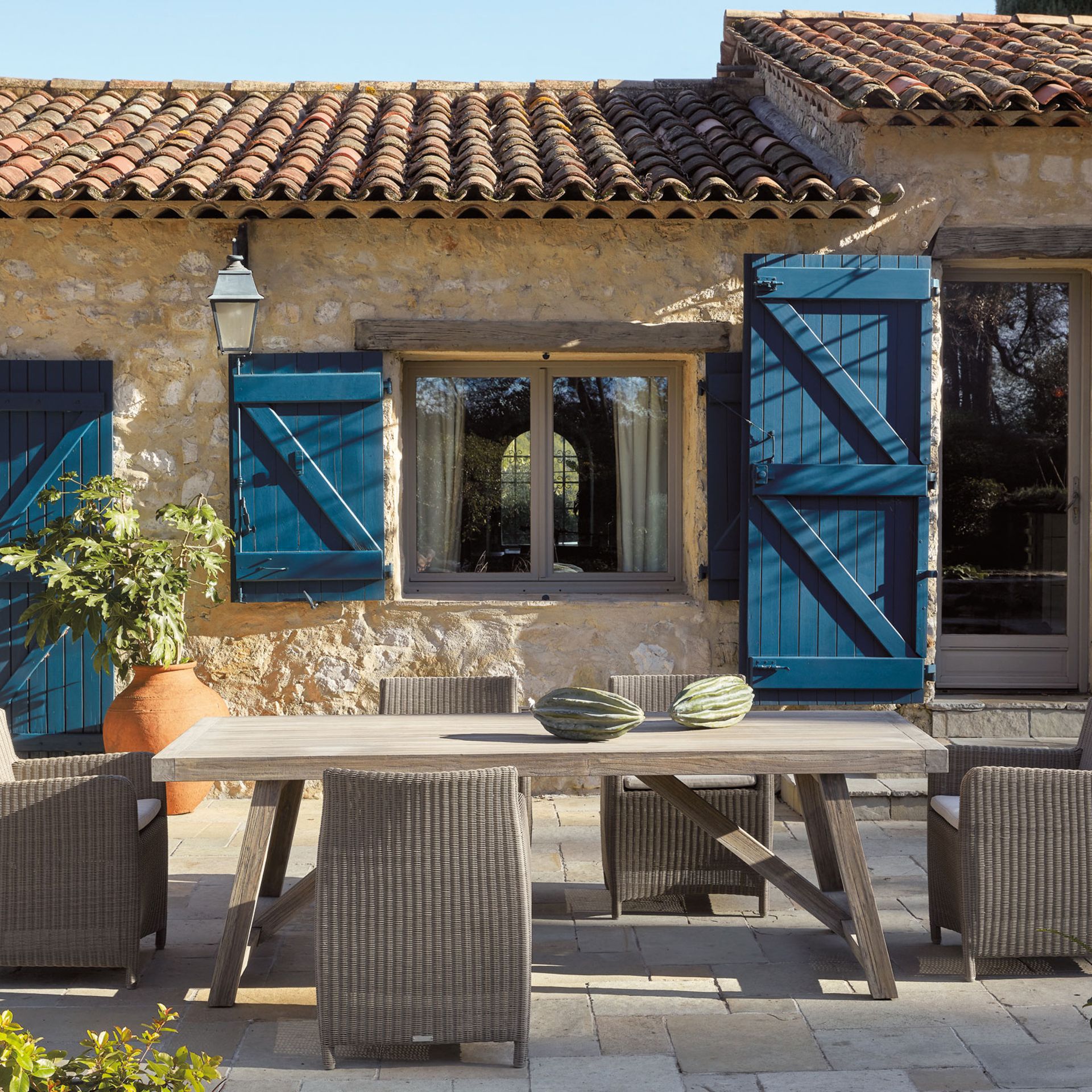 Der aktuelle Outdoor-Wohnstil spielt sich rund um natürliche Materialien ab. Echtheit, Nachhaltigkeit und Natürlichkeit stehen deshalb auch im Mittelunkt der Outdoor-Wohnkollektionen. Dazu passendes erdiges Beige, Braun und frisches Grün unterstützen diesen authentischen Stil. Doch nicht nur im Möbelsegment sind natürliche Materialien stark im Kommen: Ob Pflanztöpfe im rauen Natursteindesign, Teppiche in Jute-Optik oder Sonnenschirmständer in Holzoptik – die Natur findet sich auch mehr und mehr in Outdoor-Accessoires wieder.